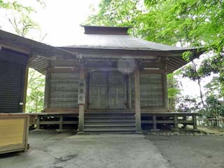 「天満宮」。 「中尊寺」境内の最奥地にある。 写真をクリックすると「天満宮」の案内板(800x600)が 表示されます。 |