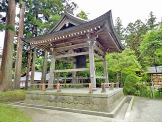 「鐘楼」。 参道右(北)側に建つ。 直径86cmという梵鐘は、余韻が長く趣きのある