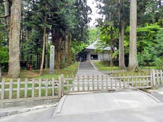 「金色堂」を参拝する人々の表参道として利用されており、登口の右側には「関山中尊寺」の寺号標が立つ。