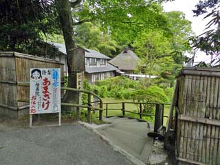 いわゆる甘味処だが、茅葺きの家は常設の「奥の細道展(有料)」の展示室になっており、 芭蕉の足跡等を辿ることができる。 |