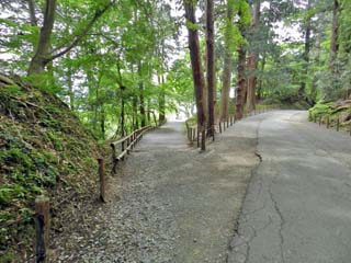 「月見坂」の杉並木。 登り坂だが、傾斜は緩い。 |