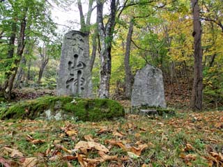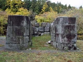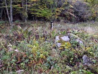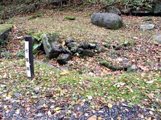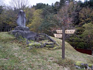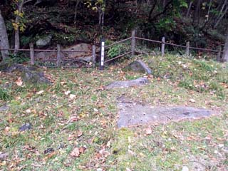 2011/10/25(8:38) 「大門跡」。 「橋野高炉」の入口であり、右の石柱には 「史跡 橋野高炉跡」とある。