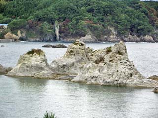 2011/10/25(10:55) 「浄土ヶ浜」に向け歩くと、右に「宮古港海戦 記念碑」があり、「この記念碑は、明治2年の 宮古港海戦をしのんで建てられた」とある。 なお、ここまでは舗装された車道であったが、 ここから「浄土ヶ浜 700m」の標識に従い 遊歩道に入る。