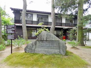 芭蕉の「夏草」英訳の句碑。 芭蕉の句「夏草や兵どもが夢の跡」を「新渡戸稲造」が 英訳したという。 The summer