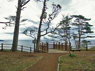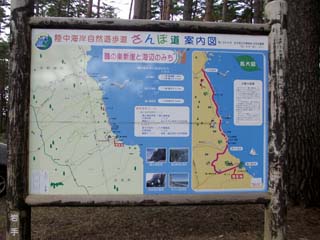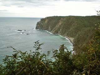2011/10/25(13:53) 「鵜の巣断崖」入口。 駐車場から、「鵜の巣断崖」の展望台までは、 森の中の道を350m程歩く。 「鵜の巣断崖」は、10km程北にある景勝地 「北山崎」ほどには積極的な観光開発は行われて おらず、一部に展望台や遊歩道が整備されている だけであるが、その分ほぼ手付かずの自然が 残されている。