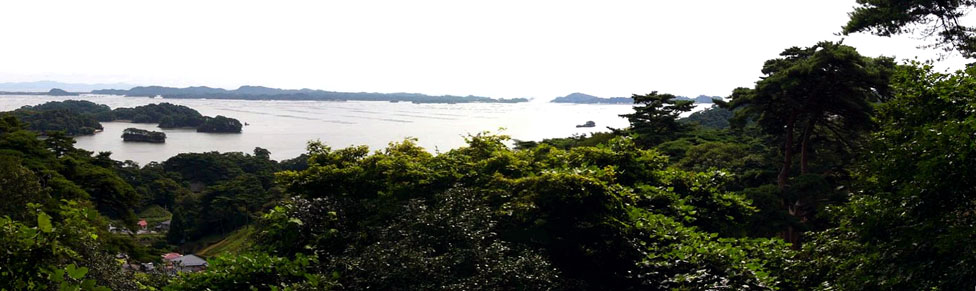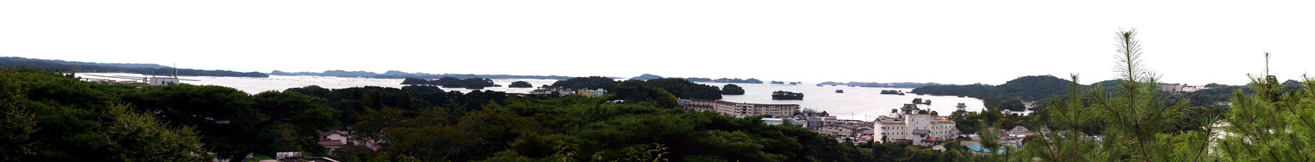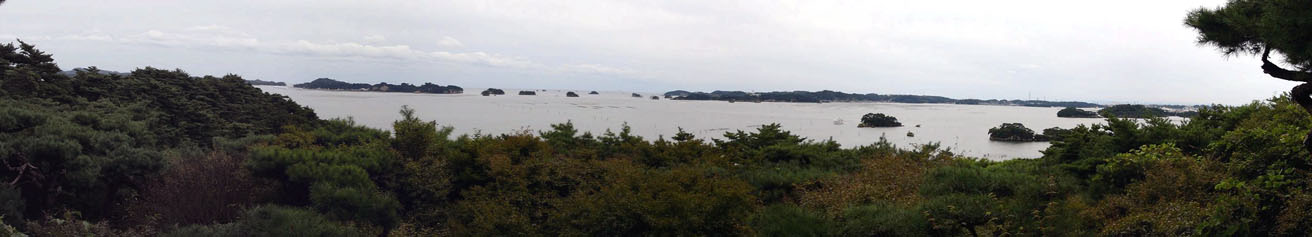 2010/9/24(13:05) 「双観山展望台:標高40m」から見る景色。 写真合成上、島々が小さく見えるが、「松島四大観」と、本ページの「拡張編」を含めた7ヶ所の中で、特に海に近い場所にあるのが、 「偉観(多聞山)」と、この「双観山展望台」である。それゆえ島々が近くに見え、他では味わえない趣がある。 注:写真は、横が1,312ピクセルあります。写真直下にあるスクロールバーをご利用ください。 |