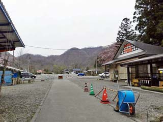 2018/4/11(8:33,8:34) 「秋保大滝」の駐車場と「大滝不動尊」の参道。