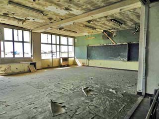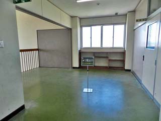 2階「家庭教室」。 津波の水は、2階の床上で収まったため、 被害は小さく済んだようである。 |