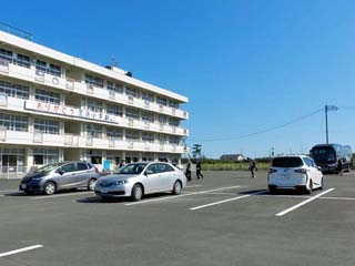2019/10/16(10:58) 校舎を出て駐車場に戻る。 平日(水曜日)のこの日でも、駐車場には 複数の乗用車やバスが駐まる。 |