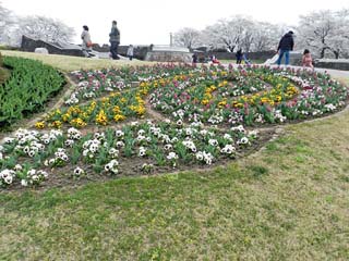 2018/4/11(11:42) 広場北部の花壇。 写真中央上には「展望台」。 写真をクリックすると拡大写真(600x450)が 表示されます。 |