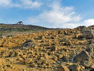「刈田岳」の頂上直下にあり、「御釜」を見下ろす展望台まで、徒歩2~3分の場所にある。 |