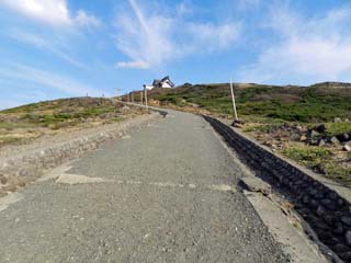 「展望台」に戻り、「刈田岳」山頂に向かう。 写真では遠く見えるが、距離は100m程である。 |