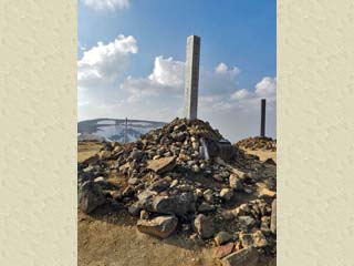 (1979)7月には、落雷により台石が破壊され倒壊する。 翌月には修復されたのだが、石碑には、落雷で受けた 電流の跡が鮮明に残る。