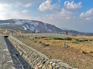 場所は、「蔵王エコーライン」の道路沿いで、駐車場も 整備され、「刈田岳」山頂まで、1時間程で登ることが できるという。 |