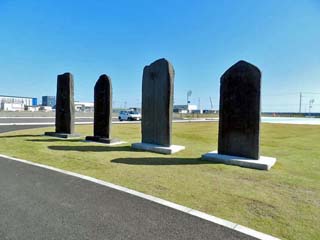 「昭和三陸津波」の教えを伝える石碑。 「日和山」の前には、4基の石碑が立つ。 閖上では、昭和8年(1933)の「昭和三陸津波」の後、