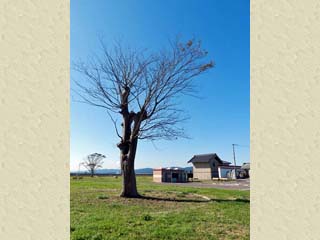 2019/10/16(8:56) 公園内に立つ木。 津波に耐え、生き残ったと思うのだが確認できず。