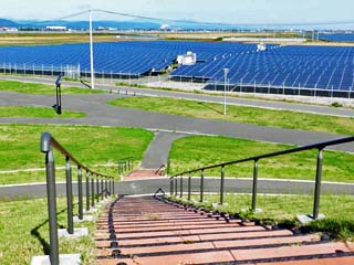 約30万枚の太陽光パネルを張った、総出力80MW、定格出力49.3MW(概ね1万9千世帯分)の