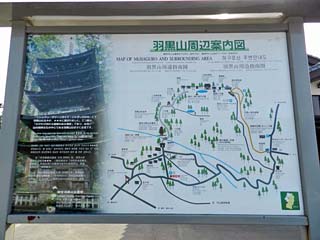 2014/5/30(6:58,6:56) 「羽黒山」参道下の駐車場と周辺案内図。 「羽黒山」は、「山形自動車道」の北端「鶴岡IC」から、ほぼ東17.5kmに位置する標高414mの山だが、 一般には、約1,400年前の推古元年(593)に「蜂子皇子」によって開かれた「出羽三山」の一つとして知られる。 「出羽三山」の内、「月山(標高:1,984m)」と「湯殿山(標高:1,500m)」は、標高も高く雪深い山頂や 渓谷にあるため、通年の参拝や祭祀が困難なことから、「羽黒山」の山頂には、三山の神々を合祀する 「三神合祭殿」が建つ。 この山頂には、有料道路「羽黒山道路」を利用すれば、ほとんど歩くこともなく立つことができるのだが、 麓の「隋神門」から山頂へと続く長さ1,700mの参道には、樹齢300~600年という老杉600本が立ち、 2,446段続く石畳の参道は、「ミシュラン・グリーンガイド・ジャポン」で、三つ星に認定されている。 本ページでは、この参道杉並木を歩いて往復した記録を84枚の写真で紹介するが、参道の素晴らしい 雰囲気は、どの写真も優劣をつけ難く、縦に撮影した写真は全て拡大写真をご覧頂けるようにしましたので、 ちょっと気になるという写真は、クリックして拡大写真をご覧になり、参道杉並木の素晴らしい雰囲気を 多少でも味わって頂ければ幸いである。 右の写真をクリックすると「羽黒山周辺案内図」が拡大表示されます。 この案内図は、720x960ピクセルあります。 案内図の文字を読みたいときには、表示された画像をクリックし、スクロールバーをご利用下さい。 |