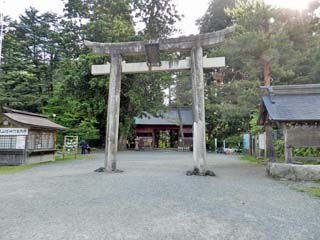 2014/5/30(7:05) 「随神門」。 「隋神門」から足を一歩踏み入れれば、「出羽三山」の 神域となる。 そして、その神域は「月山」から「湯殿山」へと続く 広大なものである。 写真をクリックすると「隋神門」の案内板(800x600)が 表示されます。 |
