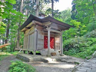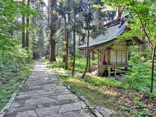 2014/5/30(7:04,7:05) 「参道入口」。 参道入口の左には「出羽三山神社社務所」が建つ。 「出羽三山」の各山には、「月山神社(祭神:月読命)」、「湯殿山神社(祭神:大山祇神、大己貴命、少彦名命)」、 「出羽神社(祭神:伊氐波神、稲倉魂命)」が鎮座するが、「出羽三山神社」は、それら3神社の総称である。 宗教法人としての登録も一つで、登録名を「月山神社出羽神社湯殿山神社(出羽三山神社)」とし、 その本部を「羽黒山」に置く。 左の写真をクリックすると「出羽三山神社の由緒」が表示されます。 この案内板は、1,200x600ピクセルあります。 案内板の文字を読みたいときには、表示された画像をクリックし、スクロールバーをご利用下さい。 右の写真をクリックすると「出羽三山案内図」が表示されます。 この案内図は、960x720ピクセルあります。 案内図の文字を読みたいときには、表示された画像をクリックし、スクロールバーをご利用下さい。 |