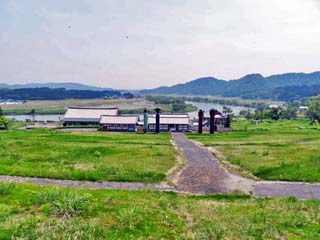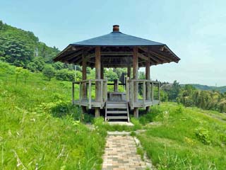 「眺河の丘」。 中央奥に展望台が建つ。 |