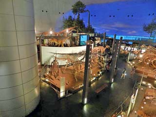 2015/10/27(15:30) 2階へのスロープから見る「恐竜の繁栄-竜盤目」。 「地球の科学」ゾーンから「恐竜の世界」に戻ると、 スロープを歩き2階へと上がる。 このスロープは、「恐竜の世界」ゾーンを一周するように 巡るため「恐竜の世界」の全体を高い位置から 俯瞰することができる。 写真をクリックすると拡大写真(600x450)が 表示されます。 |