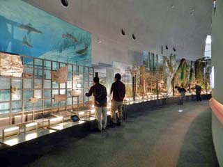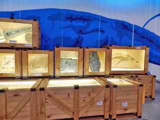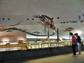 2015/10/27(15:39,15:39) 「生命の歴史」ゾーンの展示物。 写真左は、約5,000万年前に生きていたという、最古のクジラ(複製)。 左の写真をクリックすると拡大写真(600x450)が表示されます。 |