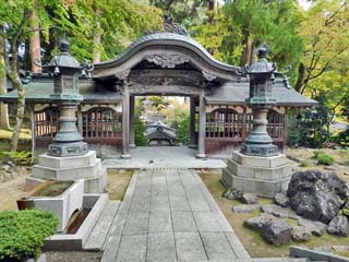 2015/10/27(13:34) 「山門」。 永平寺「七堂伽藍」の一つで、「三解脱門(さんげ だつもん)」とも称せられ、仏の世界に入る関門である。 永平寺の中で最古の建物であり、吉祥山「永平寺」の 命名の由来となる「吉祥の額」が掲げられている。 また、2階には「五百羅漢」が祀られるという。 写真をクリックすると「吉祥の額」が 表示(600x450)されます。 |