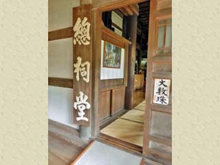2015/10/27(13:37) 「祠堂殿(しどうでん)」の入口。 「祠堂殿」では、一般信者の納骨や供養などの 法要が行われ、堂内には全国の信者から納められた 位牌が安置される。 |