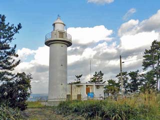 左の写真は、バス通りから外れ、生活路を北に少し歩いたところにある「福浦灯台」への