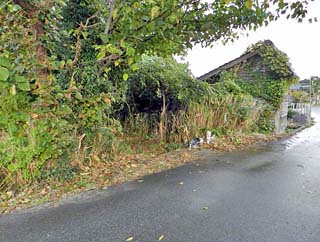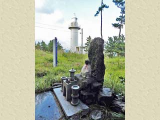 右の写真は、「耕地整理祈念碑」の道路反対側にある、「福浦灯台」への入口。