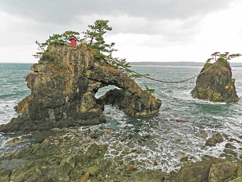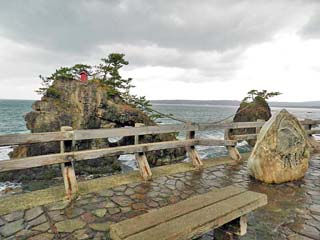大小2つの岩を注連縄で繋いだ「夫婦岩」は、