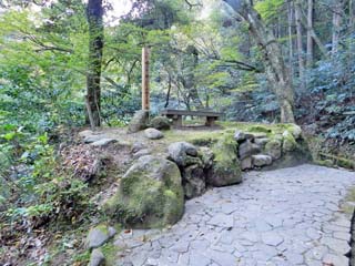 2015/10/27(7:47) 「采石巌」前の休憩所。 「采石巌(さいせきがん)」は、漢詩の第一人者 「大窪詩仏」により命名され、案内板には「この辺り、 中国風の詩趣ゆたかな雅境である」とある。 写真をクリックすると「采石巌」の案内板(800x600)が 表示されます。 |