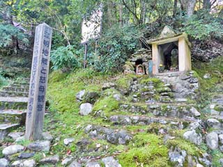 2015/10/27(8:01) 「道明地蔵と慈母観音」。 この先、「あやとりはし」までの間、登坂となる。 |