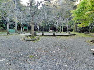 2015/10/27(7:48) 「采石巌」前の休憩所から見る景色。 雰囲気は、それなりに良いのだが、どの岩が「采石巌」と 呼ばれるものなのか、はっきりしない。 |