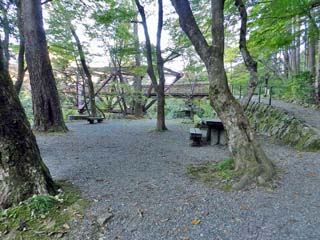 2015/10/27(8:00) 「鶴仙渓川床」。 「川床」とは、川原に張り出して設けた桟敷だという。 「鶴仙渓川床」では、写真の桟敷で、川のせせらぎを 聞きながら、山中町出身の料理家、「道場(みちば) 六三郎」のレシピによるスイーツが頂けるという。 (開店前のため、「桟敷」はカバーで覆われている) 写真をクリックすると拡大写真(600x450)が 表示されます。 |