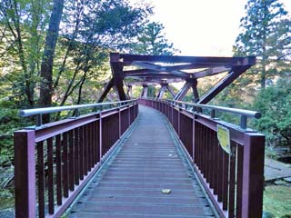 2015/10/27(8:05) 「あやとりはし」の下に架かる橋。 橋の架かる辺りは、「道明ヶ淵」と呼ばれ、 風光明媚な場所として知られる。 |