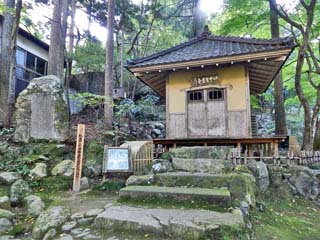 2015/10/27(8:26) 「芭蕉堂」。 お堂は、明治43年(1910)の創建。 付近の眺めの素晴らしさに思わず、 「行脚の楽しみここにあり」と手をたたいて喜んだという 俳聖「松尾芭蕉」が祀られる。 この後、「山中座」に向かい「医王寺」などを歩きます。 是非、次のページもご覧下さい。 |