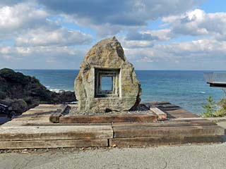 石彫モニュメント「FRAME STONE 夢の扉」。