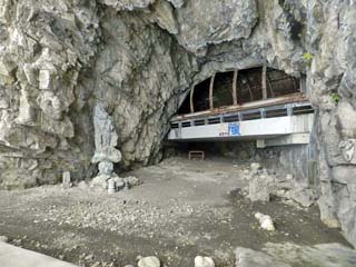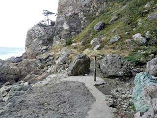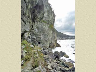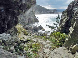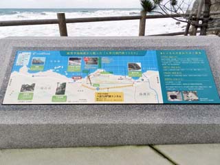 2012/11/3(12:40,12:40) 「曽々木ポケットパーク」。 「波の花遊歩道」は、輪島市から国道249号線を東に約19.7km走った「曽々木海岸」の 「八世乃洞門新トンネル」の近くにある。 以前は、「曽々木ポケットパーク」から海岸線沿いに、「垂水の滝」まで歩くことが できたのだが、平成19年(2007)の能登半島地震の影響で、現在は通り抜けできない。 「曽々木ポケットパーク」には、「能登の親不知」といわれ恐れられた断崖絶壁の地に、 現在の「波の花遊歩道」の前身となる道を、寛政4年(1792)に開道した「麒山和尚」が、 往来人の安全を祈念して建立したという「石仏」が立つ。 左の写真をクリックすると「麒山和尚建立の石仏」が拡大表示(450x600)されます。 右の写真をクリックすると「波の花遊歩道」周辺の案内図が表示(800x600)されます。