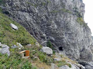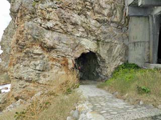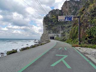 2012/11/3(12:41) 「曽々木隧道」。 平成21年(2009)、「八世乃洞門新トンネル」の 開通により、この道を車で通行することは できない。 「バス」と書かれているのは、「波の花遊歩道」 に立ち寄る観光バスのための駐車スペースで ある。