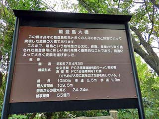 「能登島」のイラストマップと「能登島大橋」の案内板。
