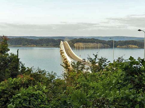 「能登島大橋」は、能登島の南端と七尾市石崎地区とを結ぶプレストレスト・コンクリート橋である。