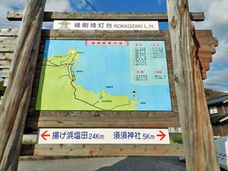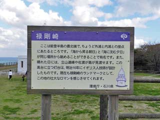 2012/11/3(13:50) 道の駅「狼煙」近くの案内板。 「禄剛崎(ろっこうざき)」は、能登半島最先端 の珠洲市狼煙町にある。 地名は、古来より日本海航路の要所として航路を 照らす「狼煙(のろし)」が上げられたことに 由来するという。 写真をクリックすると「案内図」の「禄剛崎」 部分が拡大表示(600x450)されます。