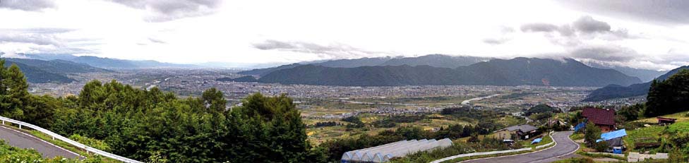 国道403号線「姨捨駅」近くにある「千曲川展望公園」から見る北から東方向の景色。