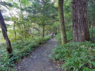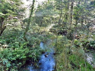 2019/9/25(9:21) 「自然研究路」は、基本的に林の中を歩くが、 所々で林が切れ視界が開ける。 なお、「上高地」にも「熊」の目撃情報はあり、 案内板には、「熊目撃情報」も掲げられていた。 写真をクリックすると「熊目撃情報」の 案内板(500x650)が表示されます。 |