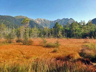 2022/9/30(8:22) 「田代池」入口の「草紅葉」。 「草紅葉」の背後は、「穂高連峰」。 写真をクリックすると拡大写真(600x450)が 表示されます。 |