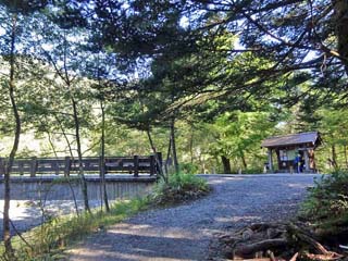 2022/9/30(8:45) 「田代橋」。 「田代橋」を渡り、この先「梓川」の右岸を歩く。 写真をクリックすると橋の上から撮る「梓川と 穂高連峰」の写真(600x450)が表示されます。 |