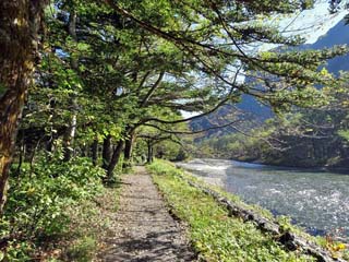 2022/9/30(12:13,12:19) 「梓川右岸コース」。 「梓川右岸コース」は、雰囲気がよく、高低差もほとんどない。 「梓川左岸コース」は、「梓川右岸コース」に比べ、距離が短い上に道幅も広く 車も通れる程に整備されていて歩きやすいのだが、車道を歩くようでつまらない。 従って、疲れ切った体には、「梓川左岸コース」がお勧めだが、 体力に多少の余裕があれば「梓川右岸コース」をお勧めする。 |