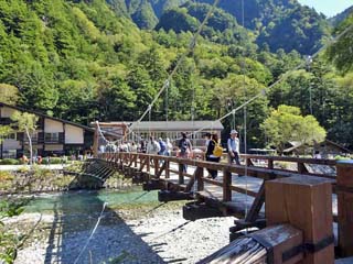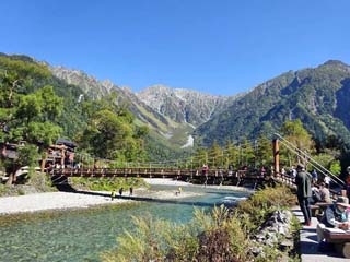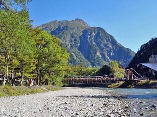 2022/9/30(9:13) 「河童橋」。 「河童橋」の背後は「明神岳」。 |
